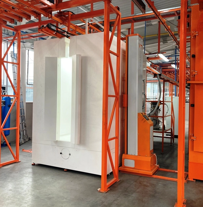 Toz boya kabini, 100mm kalınlığında ve çelik konstrüksiyonlu antistatik plastik sac panellerden modüler olarak imal edilmektedir.